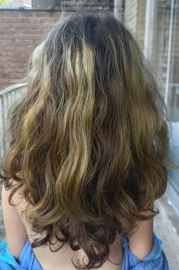 Al ei e ca al meu… La decolorat ne-am ales cu mai mult portocaliu decat vroiam, iar verdele a prins fix cum a prins gri petrol pe parul meu.